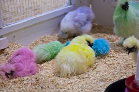 | For example, these colorful silkie chickens. I would dye one blue and name him Sanic, and blast this crime against humanity. |